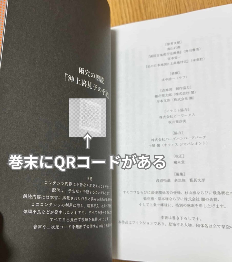『変な地図』の朗読動画は、書籍(紙・電子書籍どちらでも可)の巻末に掲載されているQRコードにあります。